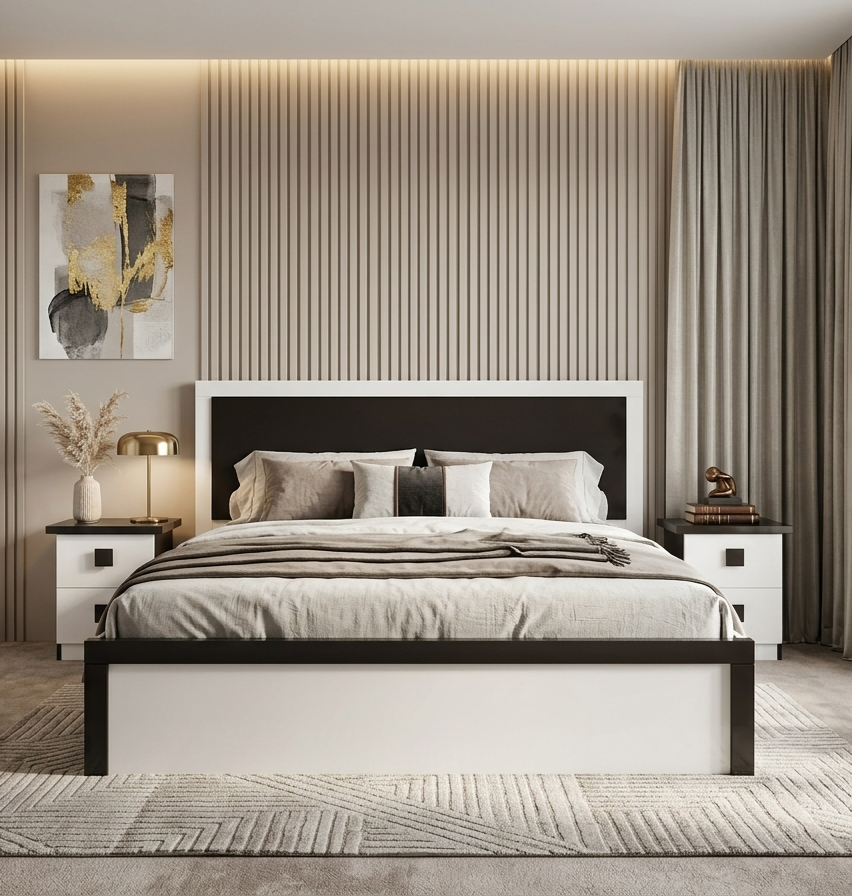 غرفة نوم متكاملة بتصميم عصري وجودة تصنيع عالية، تشمل: