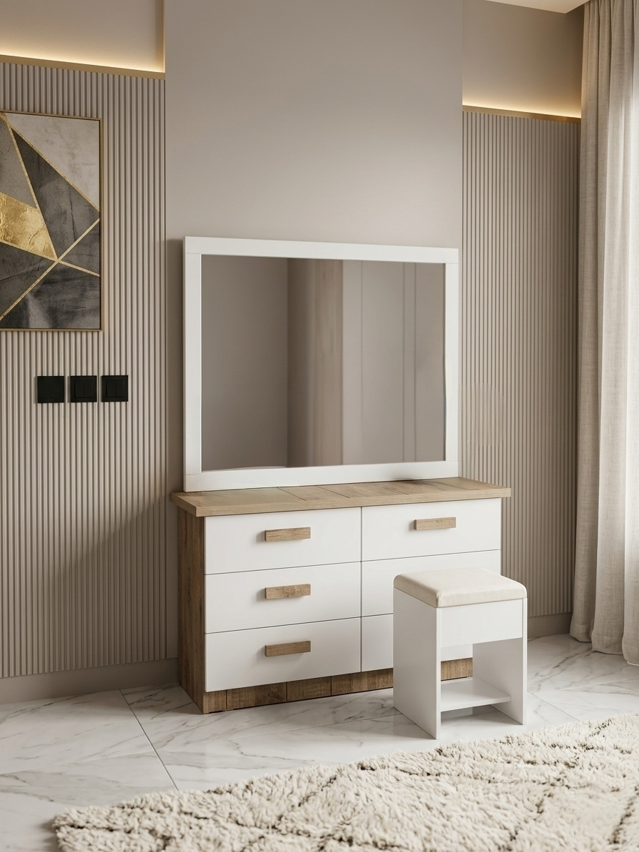 تسريحة بتصميم أنيق مع مرآة كبيرة.
