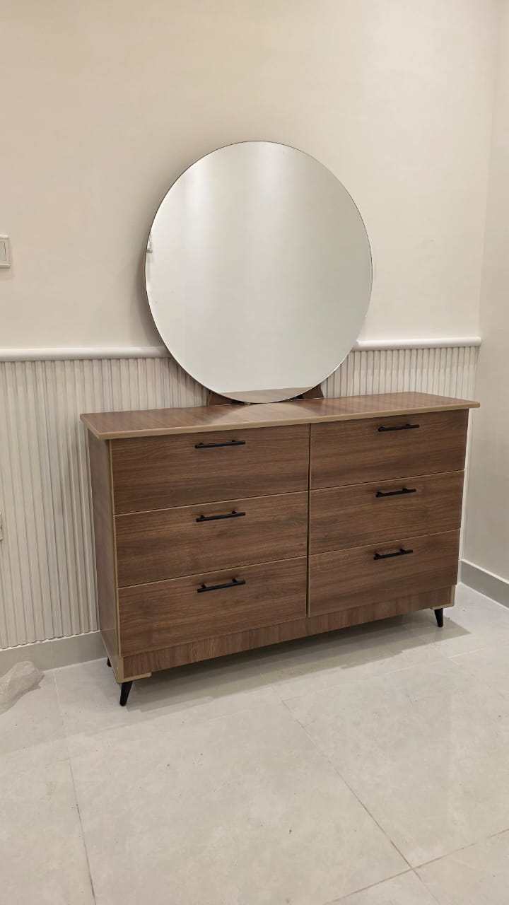 تسريحة بتصميم أنيق مع مرآة كبيرة.